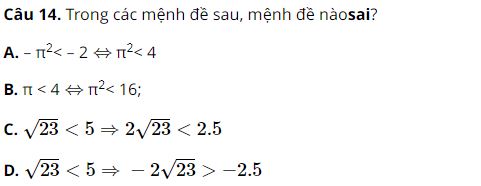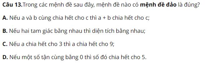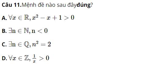 Câu 5. Trong các mệnh đề sau, mệnh đề nào là mệnh đề đúng?