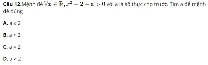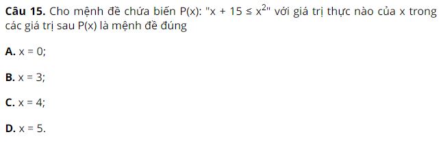 Câu 4.Câu nào sau đây không là mệnh đề?