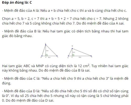 D. Tam giác đều là tam giác có ba cạnh bằng nhau.